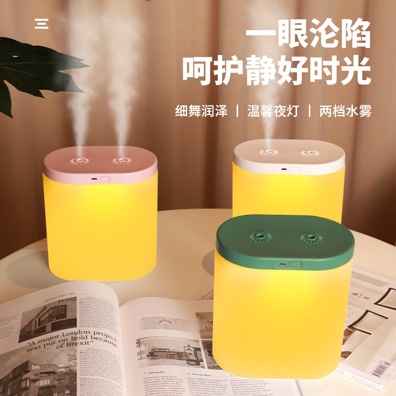 大容量2L双喷加湿器灯光无线夜灯静音家用暖光迷你绿色空气净化器
