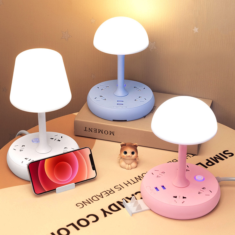 创意桌面智能USB插座卧室护眼台灯简约时尚LED小夜灯电源排插定制