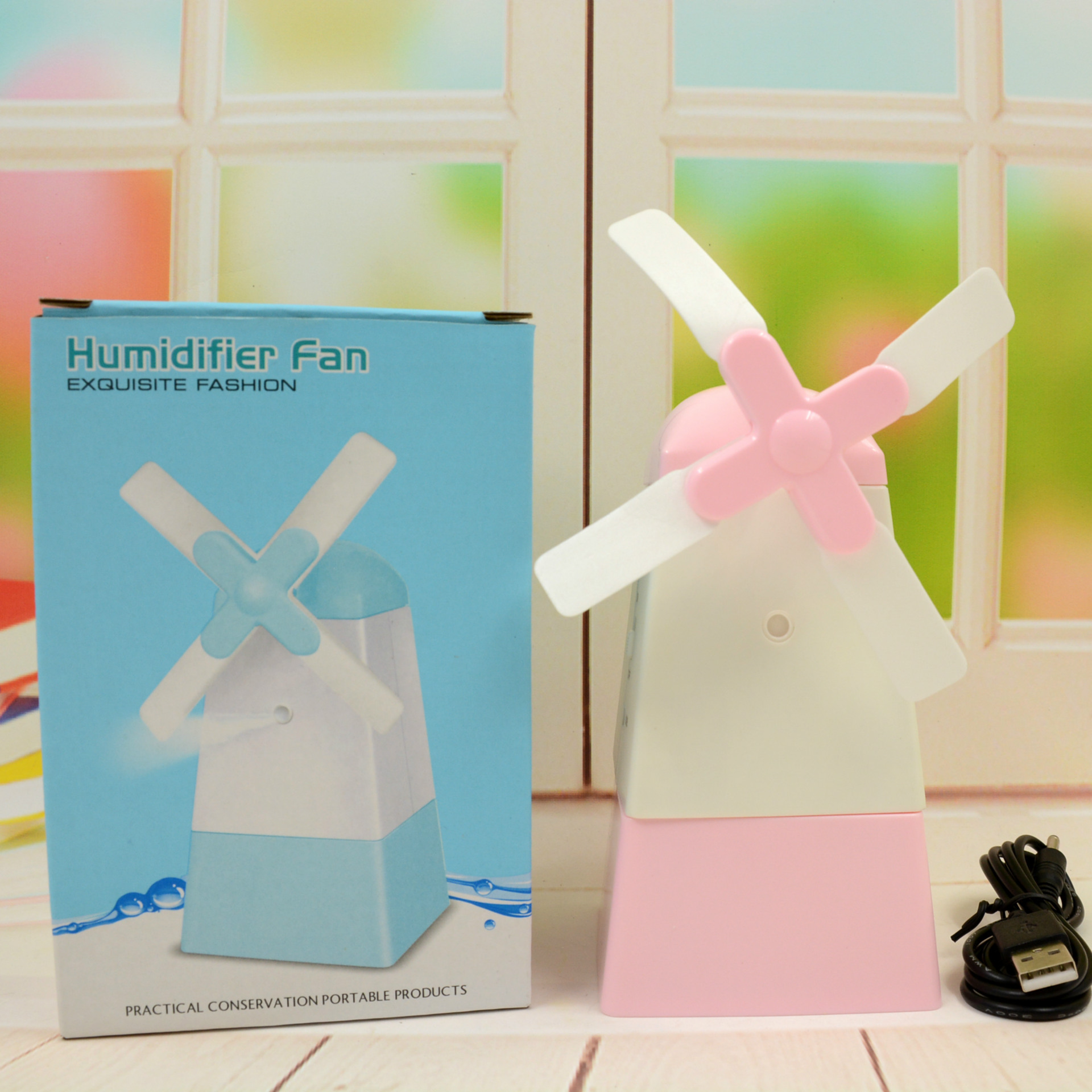 2017新款卡通大风车喷水风扇USB充电儿童风扇办公室台式小风扇