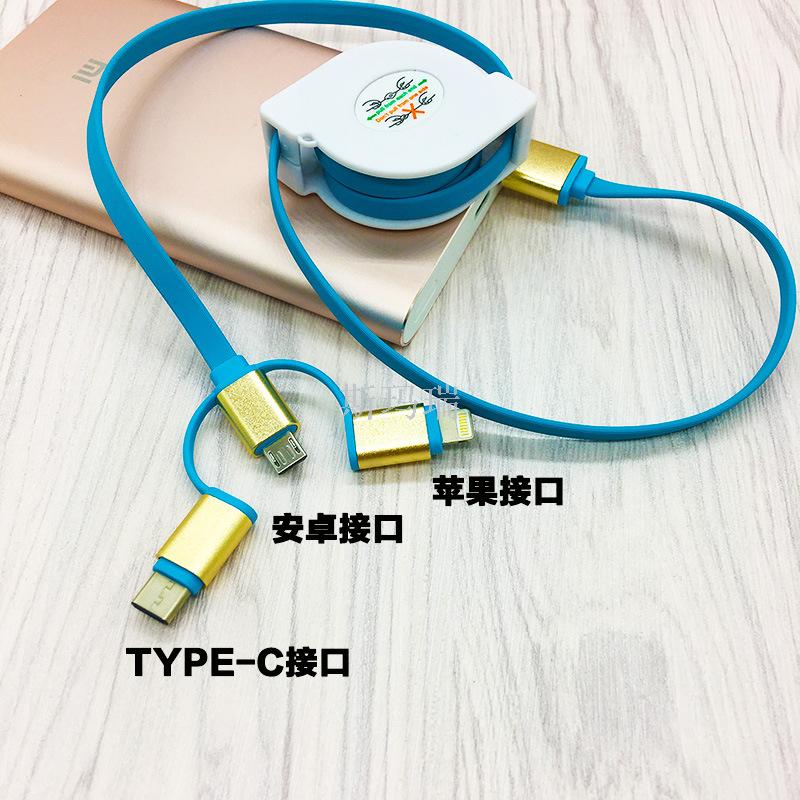 三合一金属伸缩数据线 苹果安卓TYPE-C通用USB充线礼品