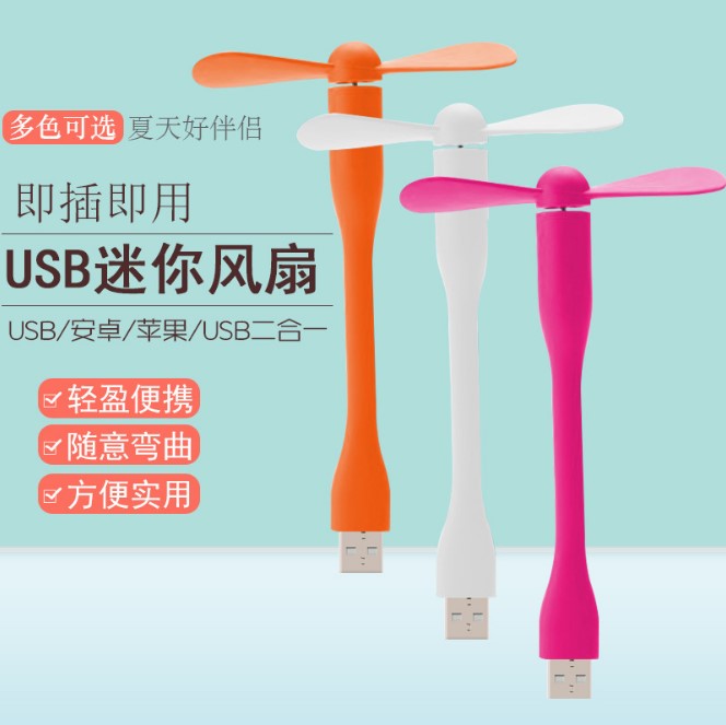 USB随身移动电源小风扇小米电脑充电宝苹果安卓二合一手机风扇