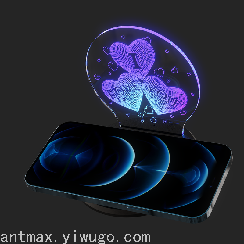 礼品广告LOGO定制LED发光无线充电器安卓苹果手机通用无线快充15W