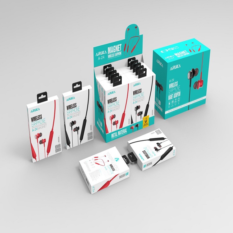 AIRUIKA新款立体声5.0蓝牙挂脖式蓝牙耳机双耳运动无线双电池厂家