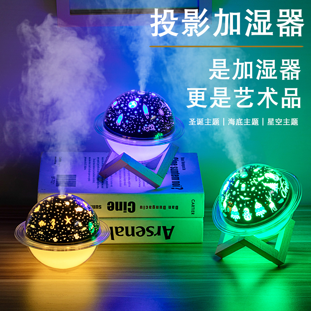 2021秋冬创意新品投影灯喷雾化器家用加湿补水圣诞礼物usb加湿器