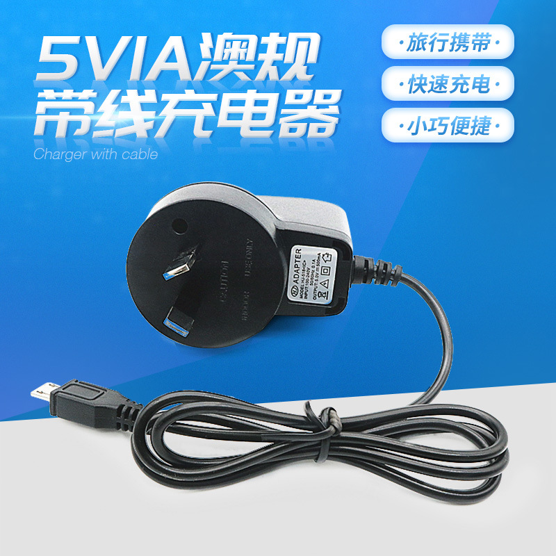澳规带线5V1A带线V8充电器阿根廷规充电器适用蓝牙耳机手机充电头