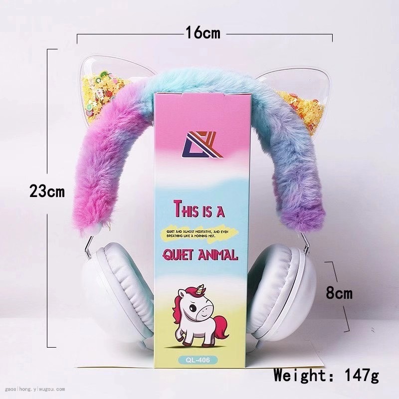 时尚彩色音乐耳机儿童可爱卡通猫耳头戴式线控耳机