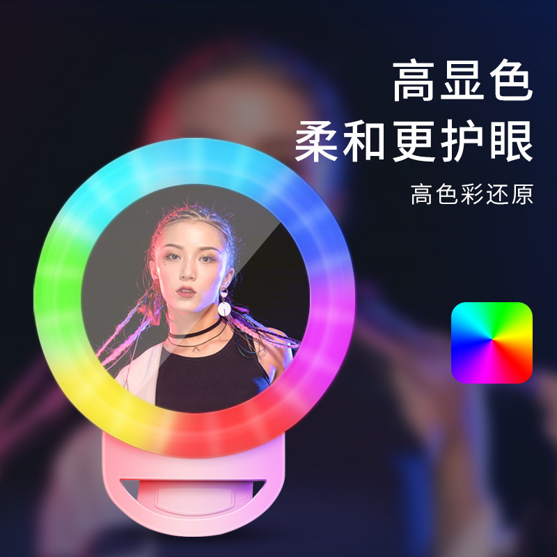 rgb手机补光灯夹子环形灯手机A4s自拍灯带镜子主播直播美颜补光灯