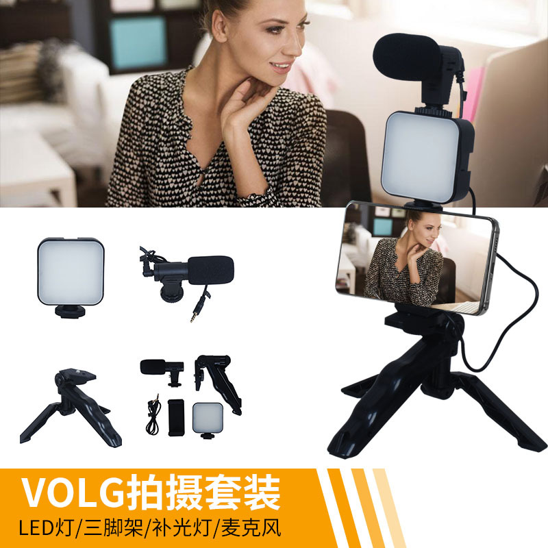 工厂直供VLOG视频拍摄LED灯摄影摄像便携三脚架补光灯麦克风套装
