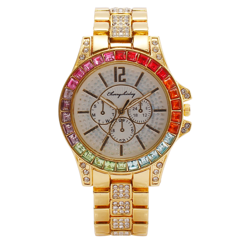 厂家现货批发外贸爆款时尚满钻镶钻三眼彩钻款男士手表男表石英表