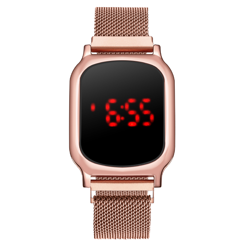 外贸爆款时尚方形 LED触屏男士手表男表懒人吸铁磁款吸铁石电子表