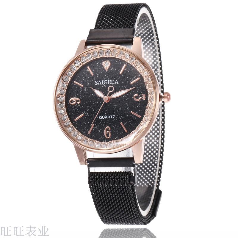 新款抖音爆款星空手表吸铁表带懒人银粉女士手表磁铁扣网带手表