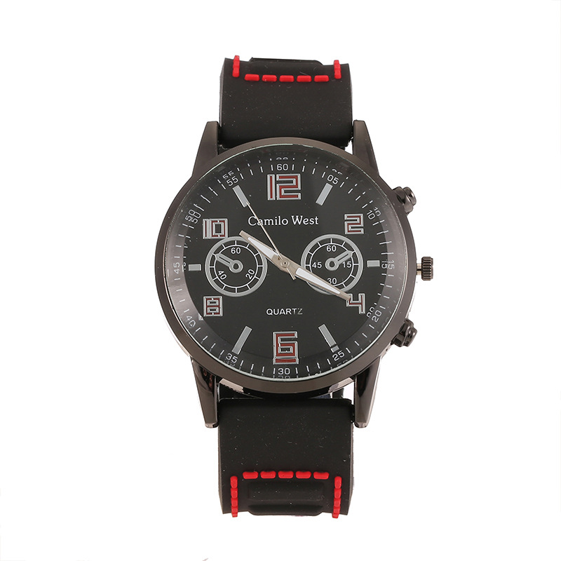 新款PVC表带男士手表 学生手表假三眼男表 一件代发