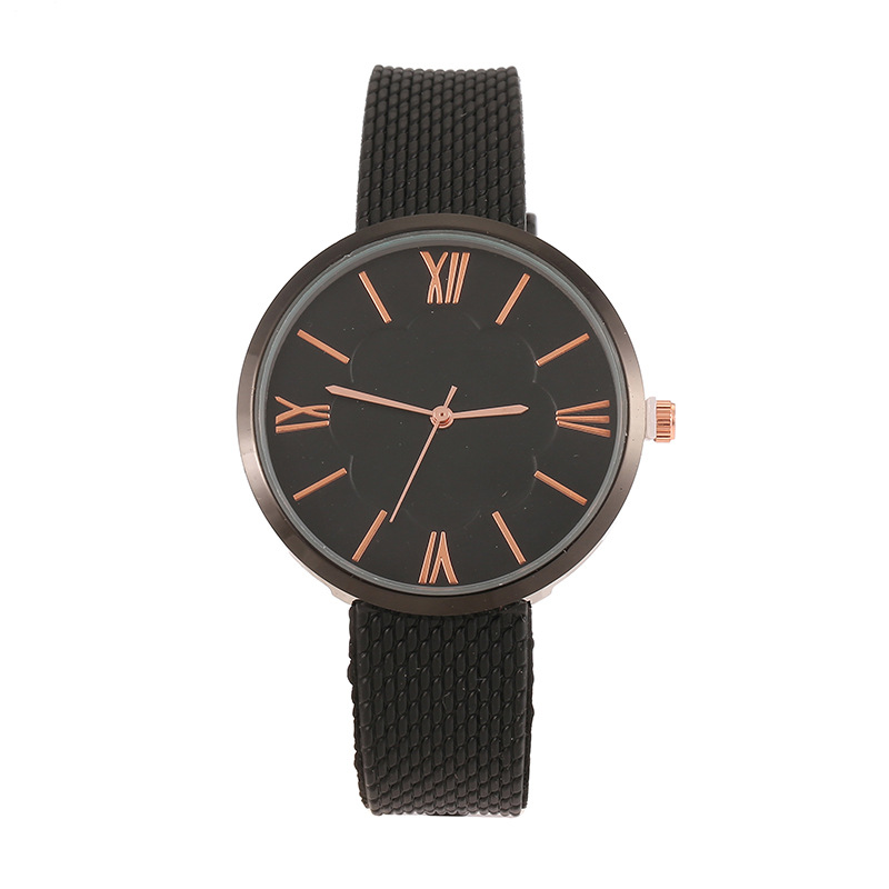 黑色皮带男士手表 女士手表 学生情侣手表 一件代发凹凸压面手表