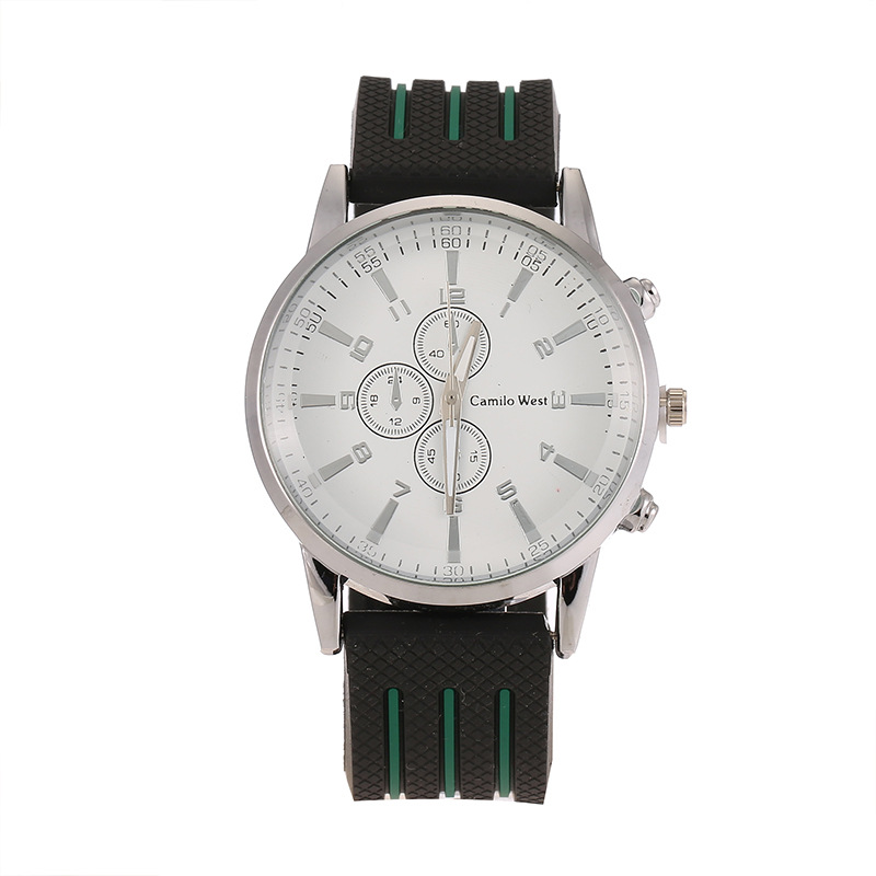 新款PVC表带男士手表假三眼男表 学生手表 一件代发