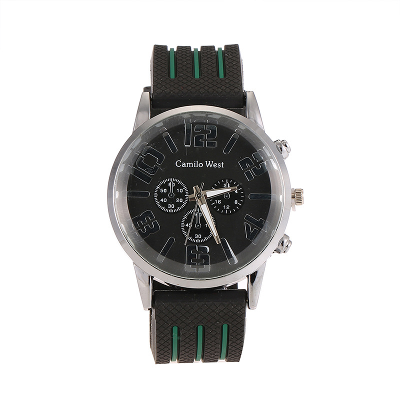 新款PVC表带男士手表 男表假三眼学生手表 一件代发