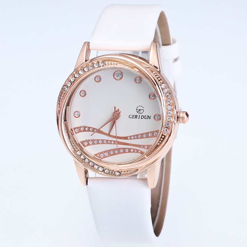 玫瑰金波浪起伏钻表女士防水表带钻表学生手表