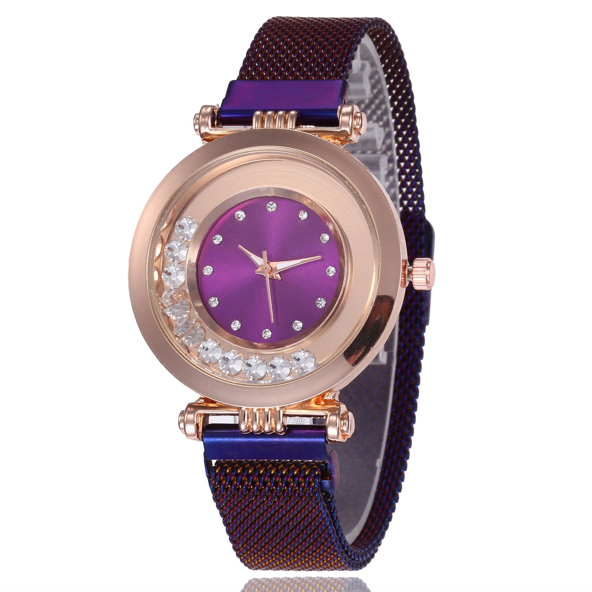一件代发女士吸铁石网带石英手表 时尚滚钻女士休闲运动腕表