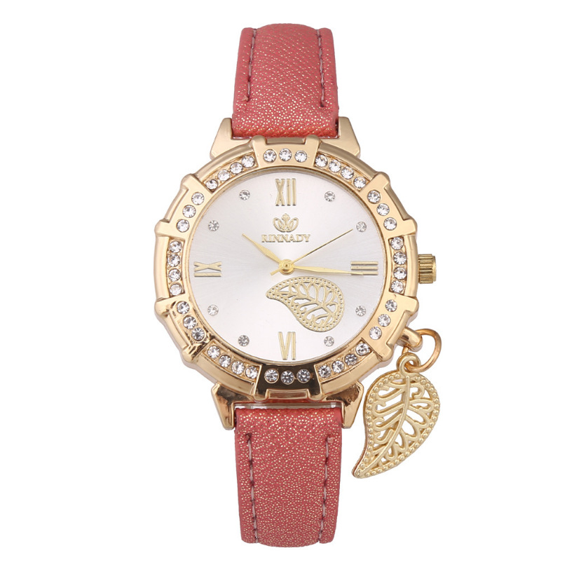 女款时尚个性树叶吊坠手表 女士叶子腕表 皮带石英表一件代发