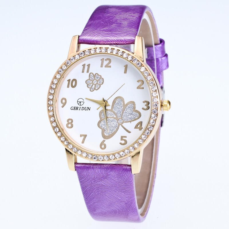 金色蝴蝶钻表防水表带女士学生手表数字面简约时尚手表