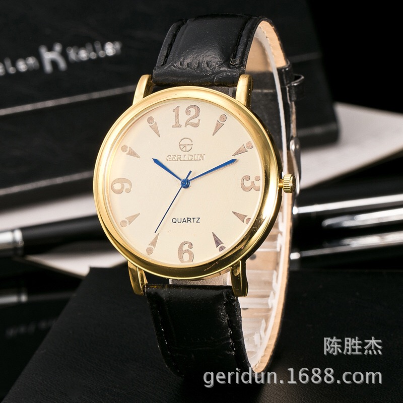 金色数字面简约时尚皮带手表情侣表男士休闲手表