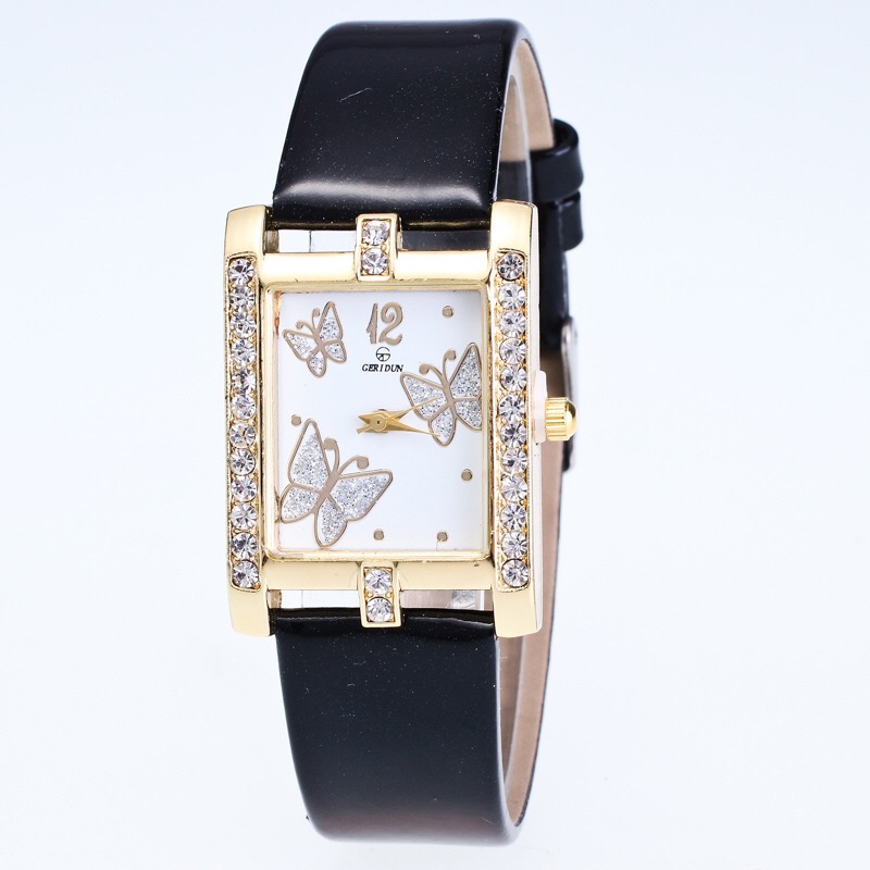 蝴蝶方形皮带手表 防水表带钻表