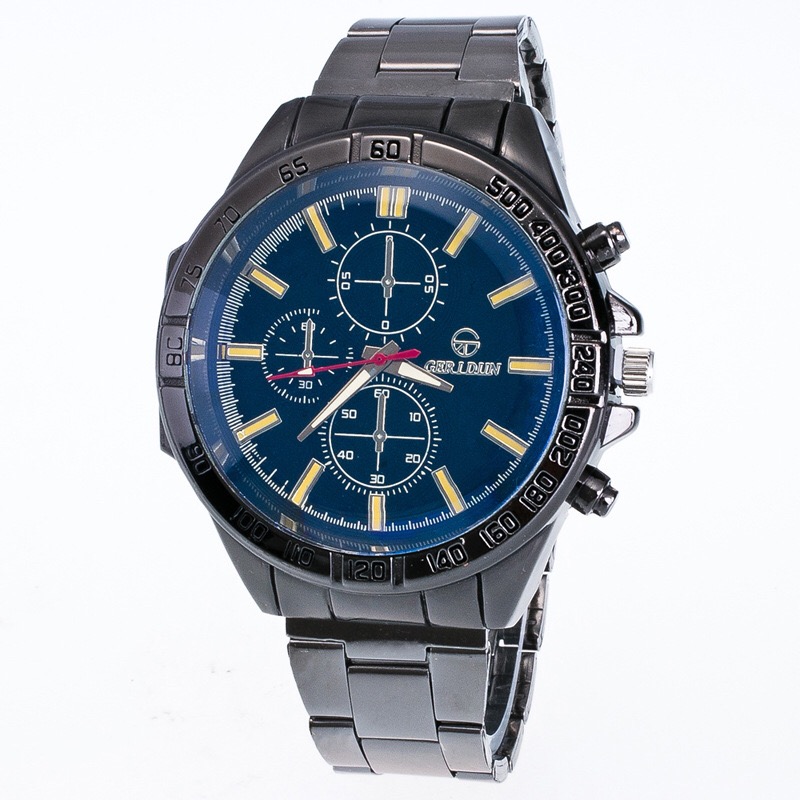 抢黑钢带男士休闲运动大表盘厚玻璃男表