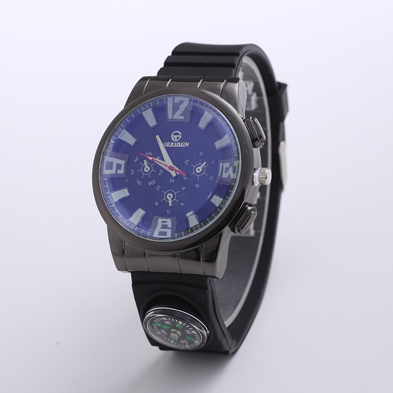 指南针硅胶表带男士休闲运动大表盘厚玻璃男表