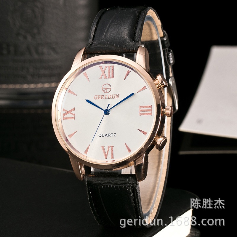 玫瑰金壳子数字面假三眼皮带手表幻蓝玻璃情侣皮带手表