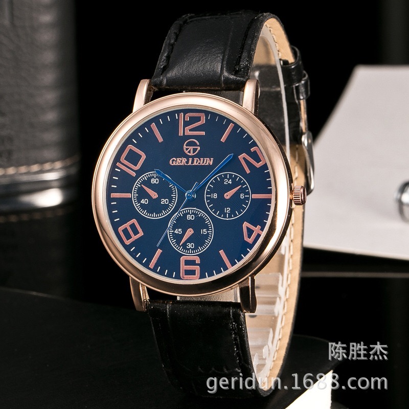 玫瑰金简约数字面皮带手表情侣表男士休闲运动表