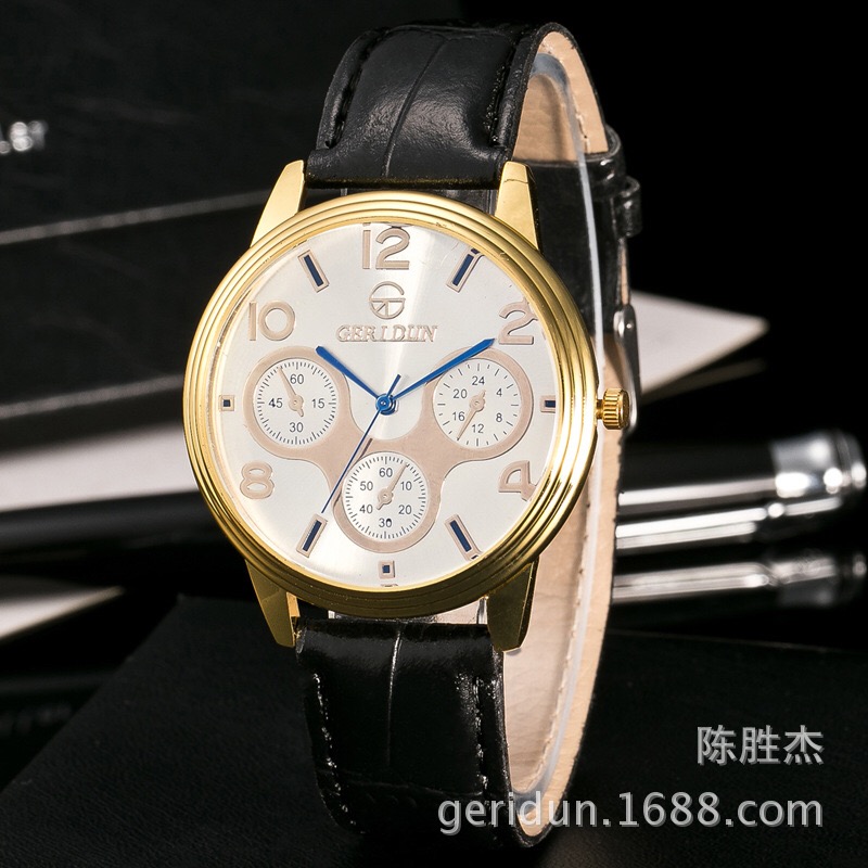 金壳数字面简约时尚手表幻蓝玻璃情侣皮带手表