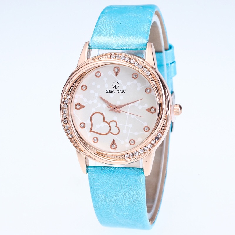 玫瑰金爱心手表 女士防水表带钻表