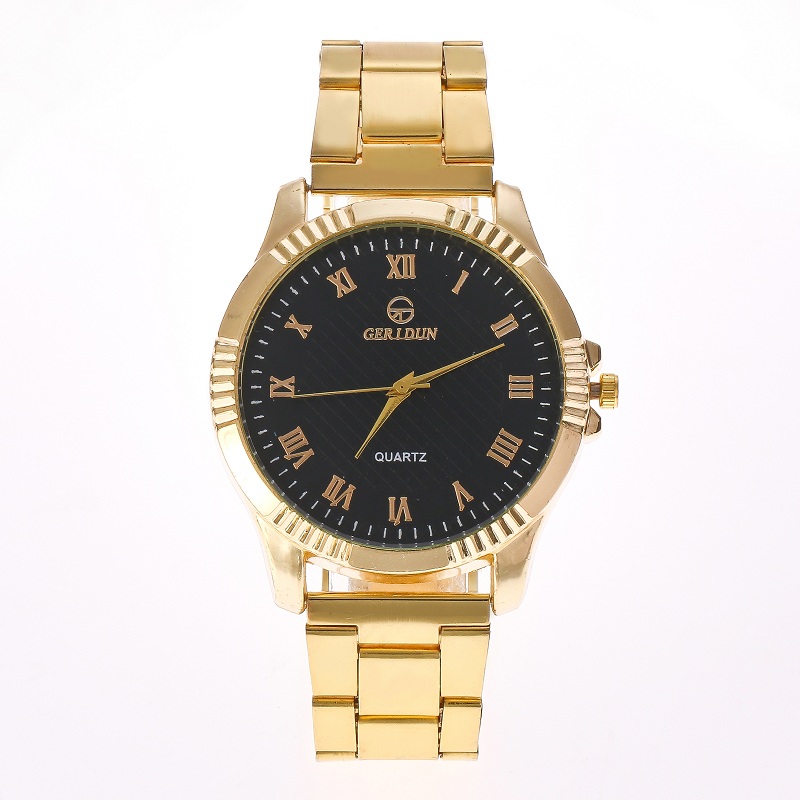 潮流时尚间金罗马数字男士钢带手表 非机械石英手表