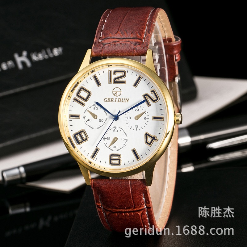 金色数字面皮带手表简约时尚韩范儿情侣表