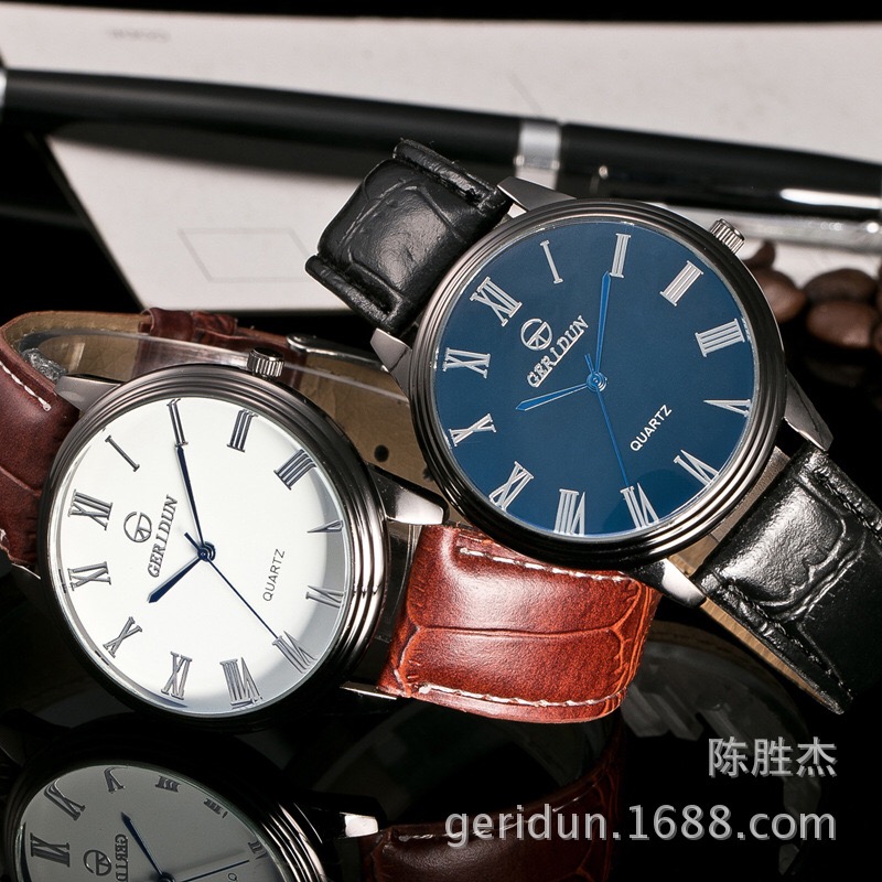 枪壳罗马数字刻度皮带手表简约大气情侣表