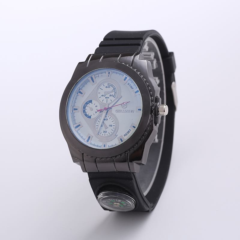指南针硅胶表带男士休闲运动大表盘厚玻璃男表