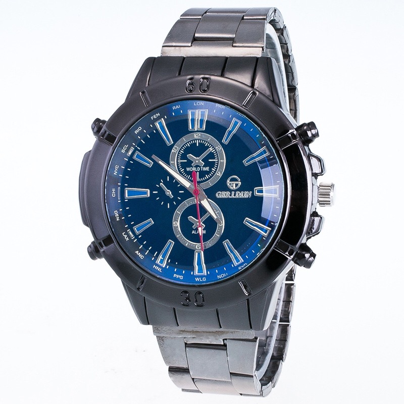 抢黑钢带男士休闲运动大表盘厚玻璃男表