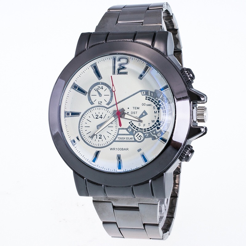 抢黑钢带男士休闲运动大表盘厚玻璃男表