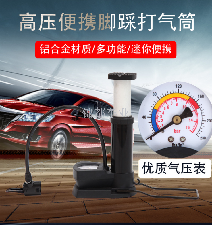 锦都山地车自行车 便携式高压铝合金 脚踩迷你打气筒气枪