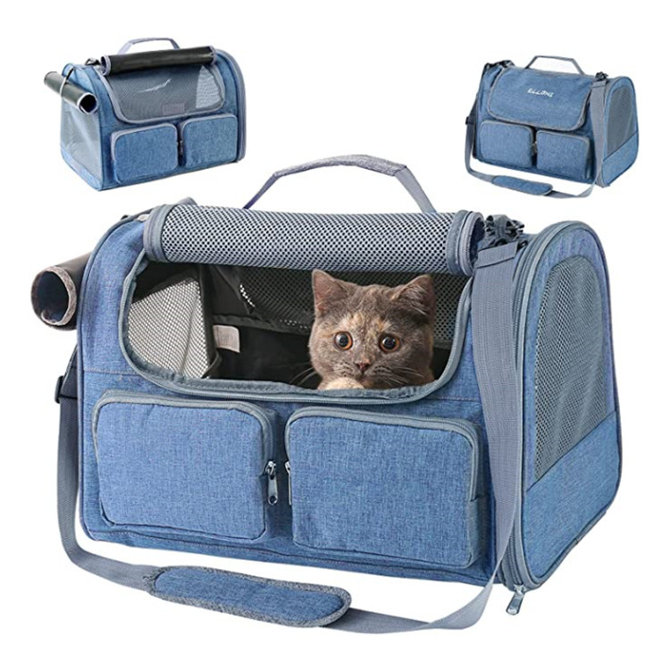逊新款单肩猫狗包宠物双扩展包外出旅游便携透气斜挎猫包