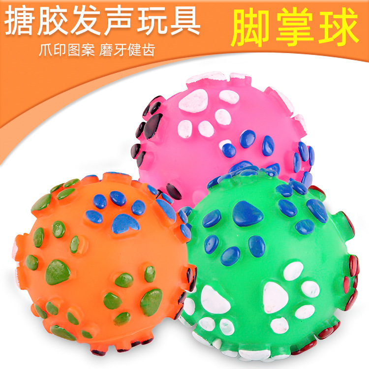 宠物玩具搪胶七彩脚印狗狗发声玩具球磨牙小狗训练狗玩具厂家批发