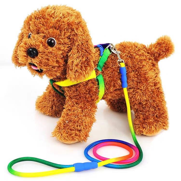 狗狗牵引绳七彩胸背带家用户外狗链子泰迪小型犬圆绳牵引带溜狗绳