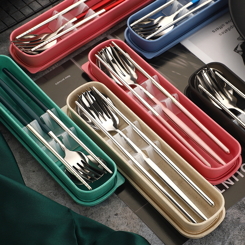 不锈钢餐具套装 葡萄牙便携餐具 学生宿舍勺叉筷子三件套logo定制