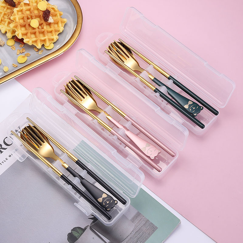 304不锈钢餐具勺子叉筷子少女卡通学生户外勺筷便携餐具套装3件套