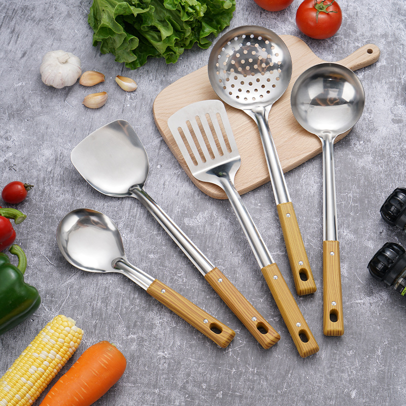 厂家直销不锈钢木柄锅铲厨房小工具防烫煎铲漏勺粉捞烹饪厨具套装