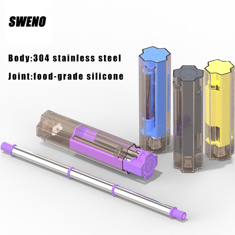 SWENO 四叶草2020新款可折叠吸管不锈钢亚马逊可拆卸伸缩吸管套装
