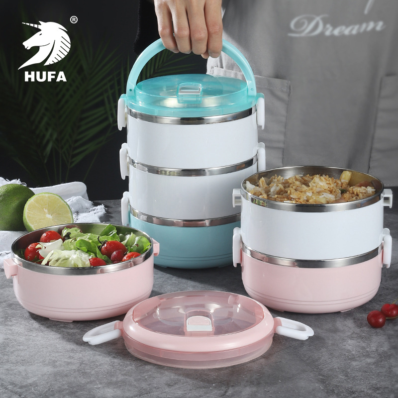 互发 不锈钢保温饭盒带盖 圆形分格便当学生上班族便携多层餐盒