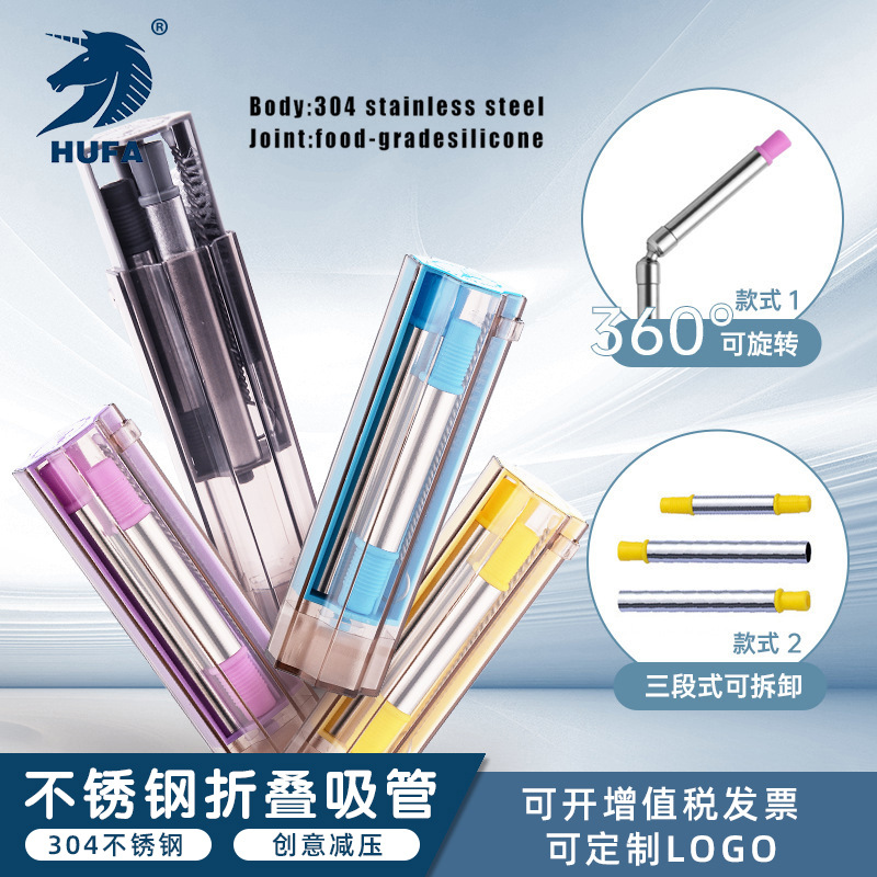 SWENO 跨境四叶草不锈钢吸管套装硅胶吸管可折叠吸管定制环保便携