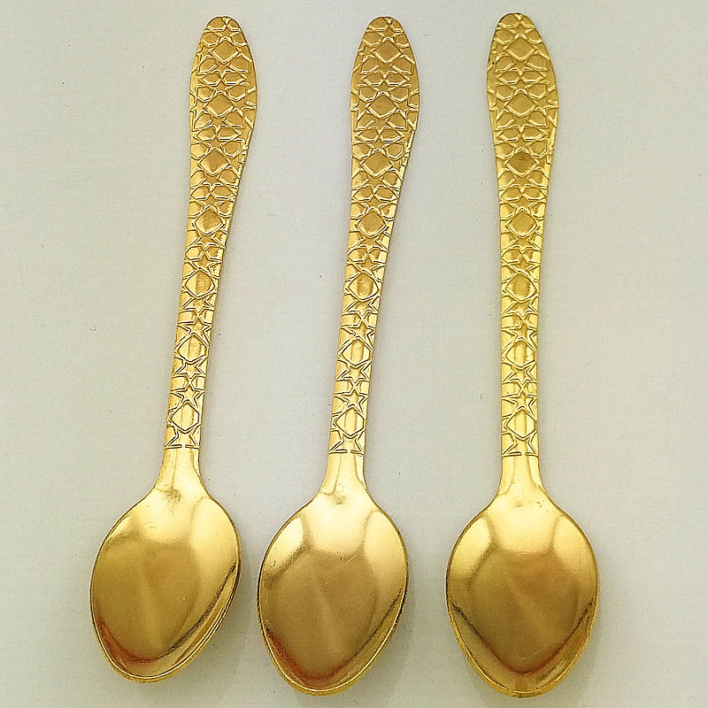复古金色咖啡勺不锈钢甜品鱼鳞勺欧式宫廷贵族小搅拌调更蛇皮勺