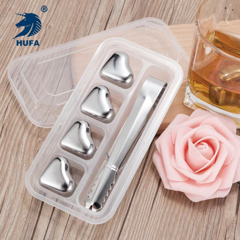 SUS304心型不锈钢冰块 心形冰粒冰酒石酒具速冻制冷金属