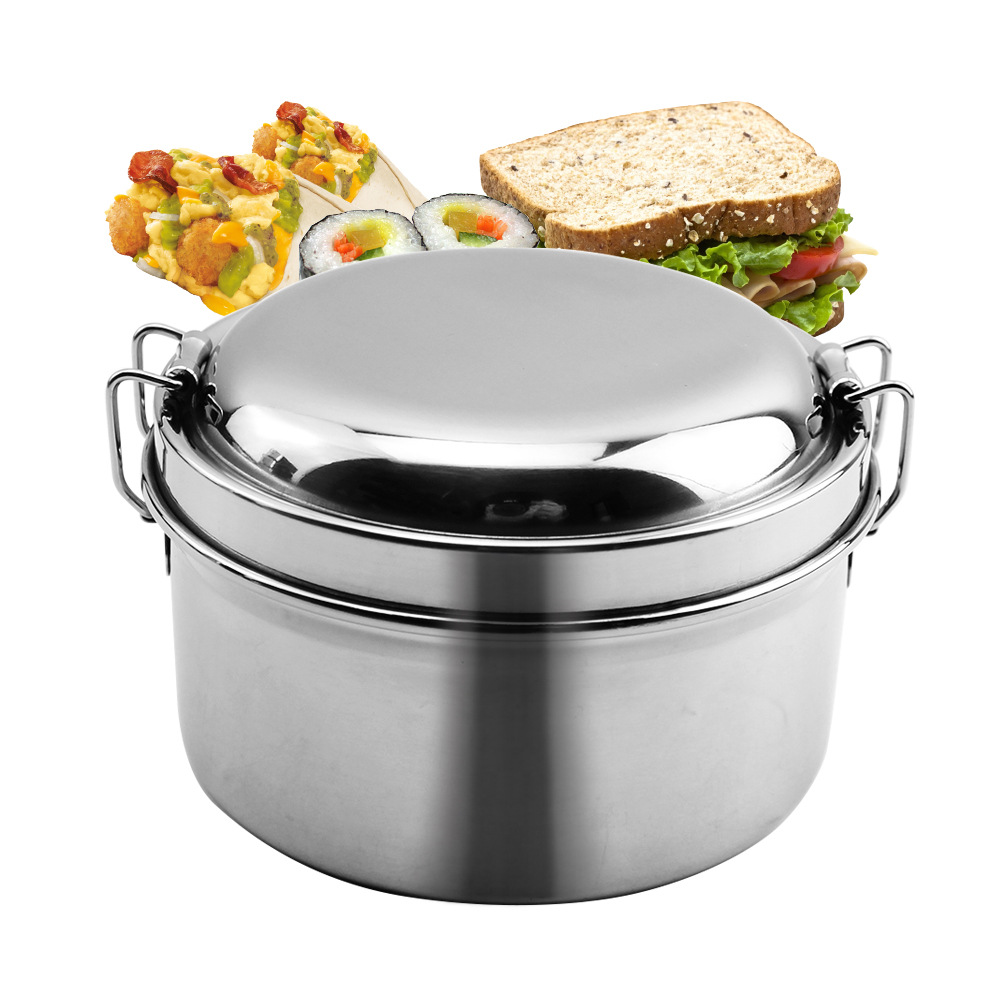 304不锈钢儿童午餐盒 带扣加固学生便当盒圆形多层饭盒定制批发